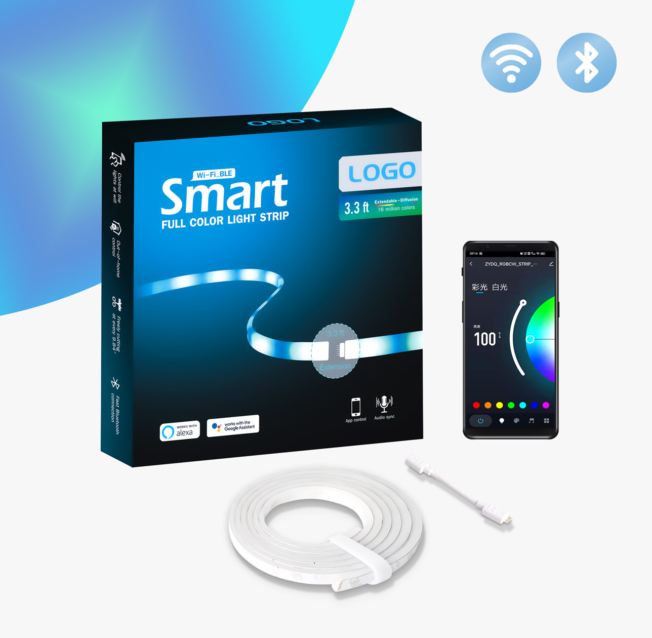 | Dow Corning Silicone: Anti UV, nessun ingiallimento entro 3 anni. | Protocollo senza fili: Wi-Fi_BLE IEEE802.11b/g/n 2.4GHz |