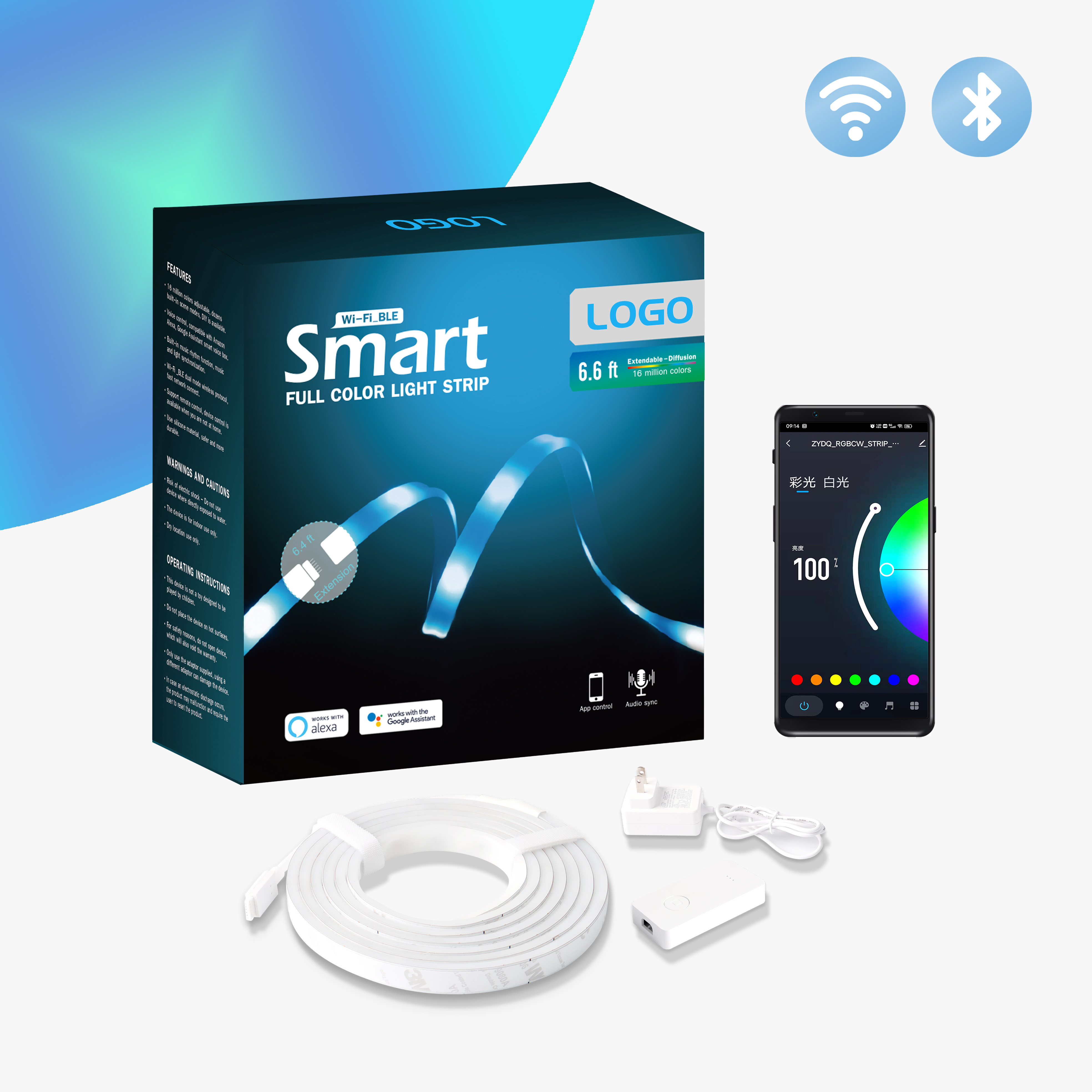 | Dow Corning Silicone: Anti UV, nessun ingiallimento entro 3 anni. | Protocollo senza fili: Wi-Fi_BLE IEEE802.11b/g/n 2.4GHz |